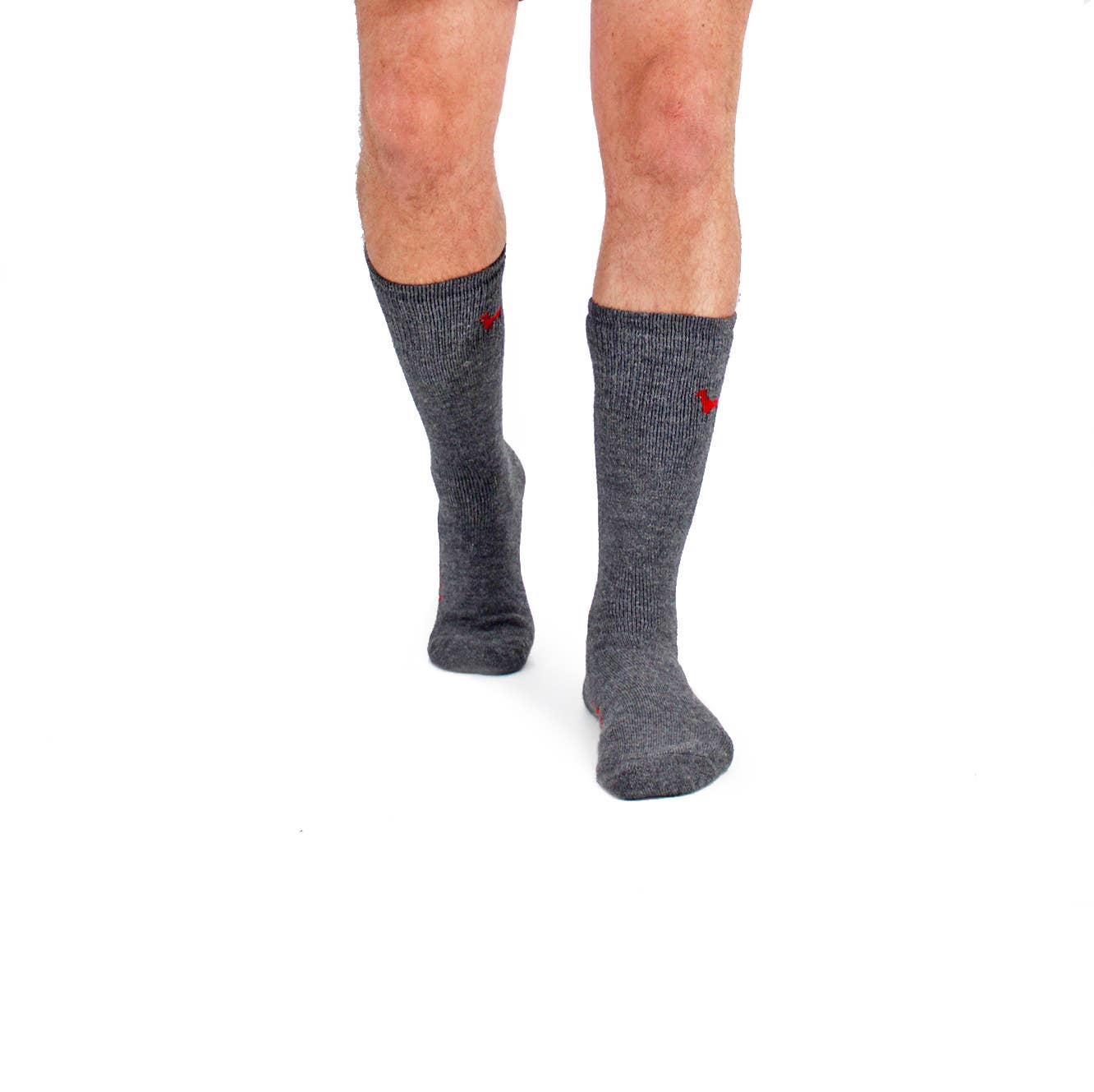 Everest Baby Alpaca Natural Fiber Wool Comfortable Breathable Moisture-Wicking Dress Socks for Men & Women Meet your new go-to outdoor socks. Everest Alpaca Sport Socks are crafted with 80% baby alpaca yarn (15% nylon, 5% lycra) for unmatched softness, warmth, and durability. Proudly made in North Carolina, US, these unisex socks are designed to perform in any condition—whether you’re hiking, skiing, or just power lounging. A thick cushion and reinforced terry footbed deliver cloudlike comfort and lasting protection, making them the ultimate alpaca sock. Why You’ll Love Them COMFORTABLE: All-weather friendly, these socks keep feet warm in the cold and cool in warmer weather. Made with super-soft baby alpaca yarn fibers, they're super-soft and feature a no-clip cuff, so they stay up without being constricting. DRY FEET: Naturally water-repellent baby alpaca wicks away moisture, keeping your feet dry and comfortable—even on the toughest hikes. BREATHABLE: Alpaca fiber is naturally moisture-wicking and la